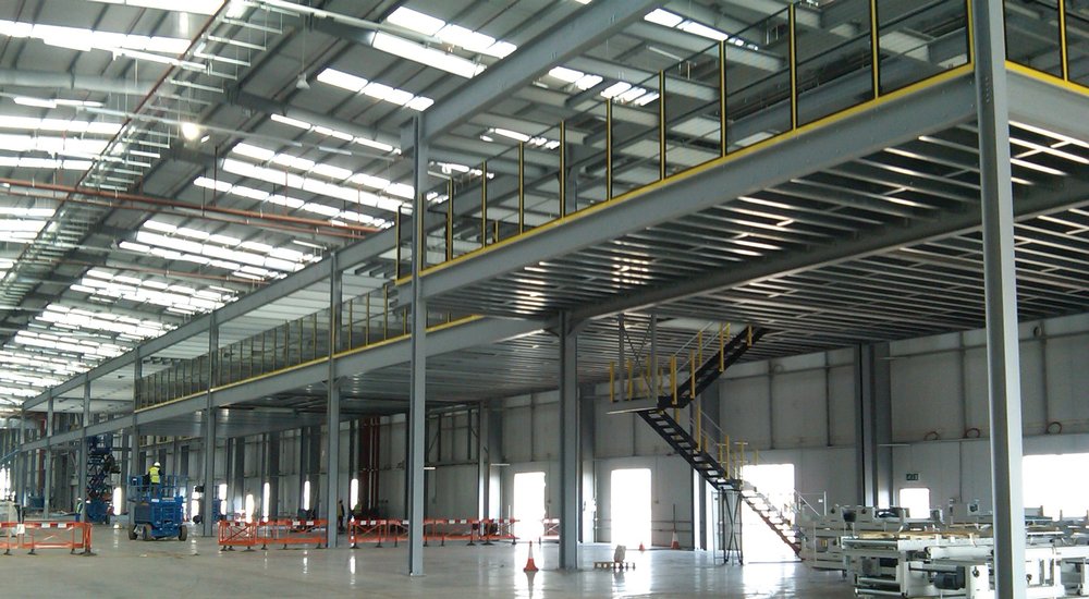 A Mezzanine Floor is actually a lifted platform that is supported by steel columns and is completely independent of the host building. It allows you to create additional floor space from wasted air space above your existing work. Also, it can be used to create an extra office, production, storage, or even retail space. This may double, or even triple, the amount of space available.